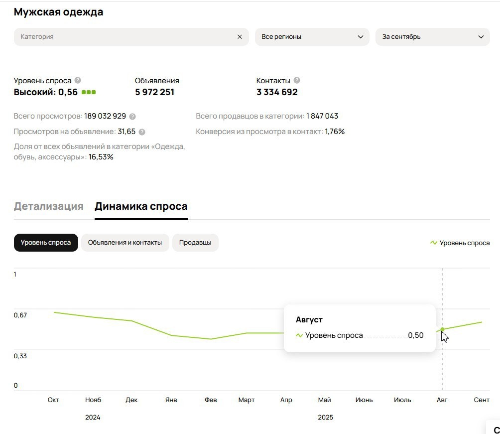 ощутимо выросли в сентябре продажи Мужской одежды, при общем высоком уровне спроса