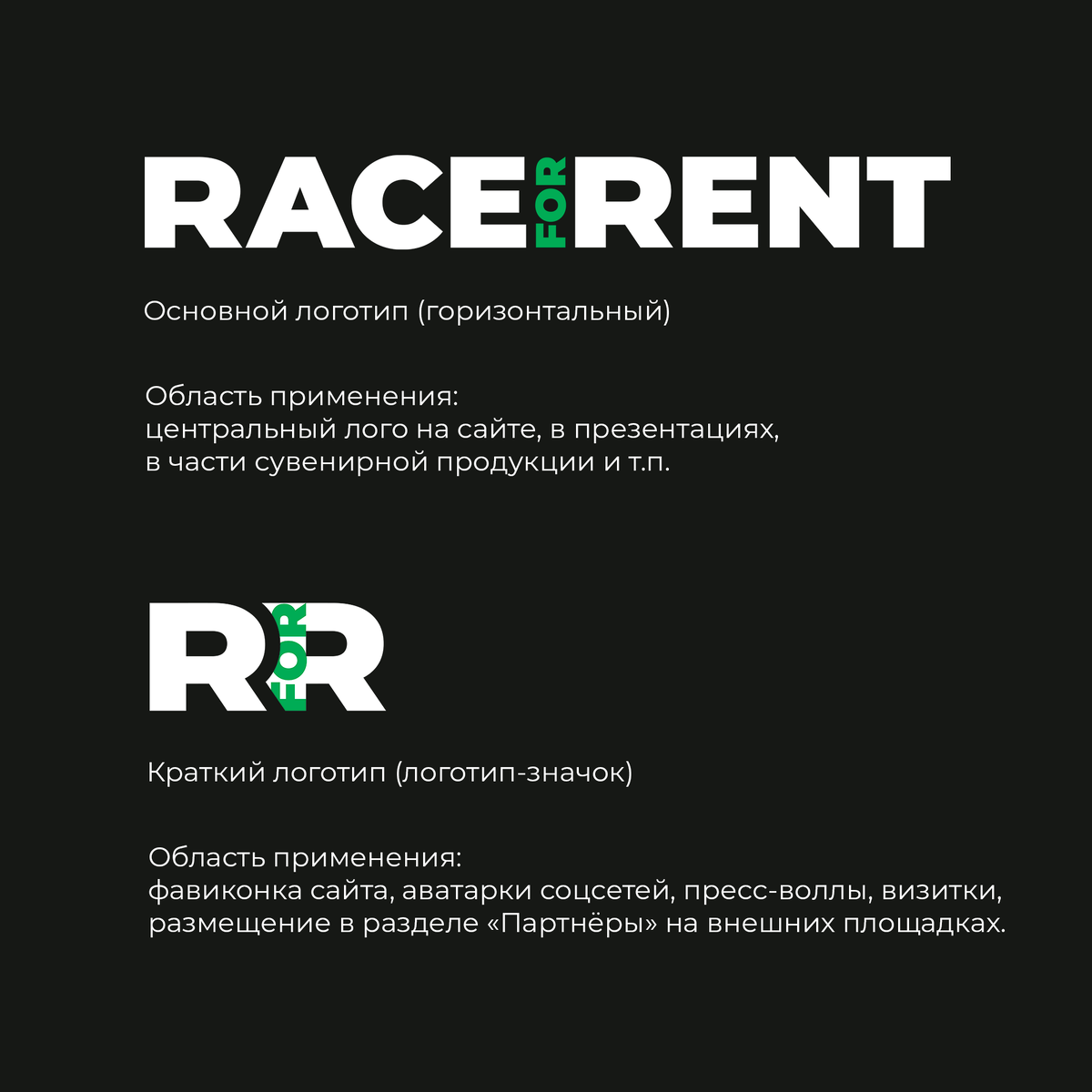 Кажется, что логотип — это всего лишь текст и картинка, который мы везде лепим. Одна штука, которую может нарисовать ИИшка. Это же легко, почему дизайн лого всегда довольно серьёзную сумму занимает в смете? Потому что хороший дизайнер никогда не делает “одну картинку”, когда Вы заказываете у него логотип. Требуется целый пул форматов, который клиент сможет легко применять в своей рабочей деятельности. Рассмотрим на примере RACE for RENT — B2B-компании, которая помогает организовывать спортивные мероприятия: устанавливает электронный хронометраж, делает гравировку медалей, в т.ч. персонализированную, находит экспертов среди кмс, мс и чм на спортивное судейство и помогает настроить онлайн-регистрацию участников. Опустим концептуальные вещи. В этом логотипе нужно шрифтом отразить мощь, драйв и надёжнность одновременно. Это сделано. Что с форматами? Во-первых, форма. Логотип может быть размещён на сайте, на футболке сотрудника или на авторучке. А может быть на фавиконке, куда он целиком не