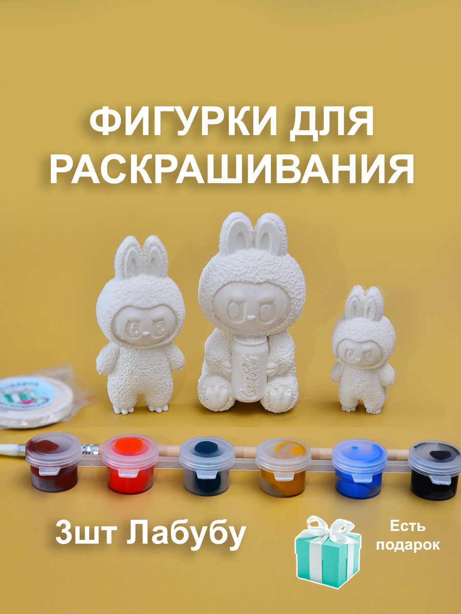 Гипсовые фигурки Лабубу для разукрашивания 3шт. краски. кисточка. открытки