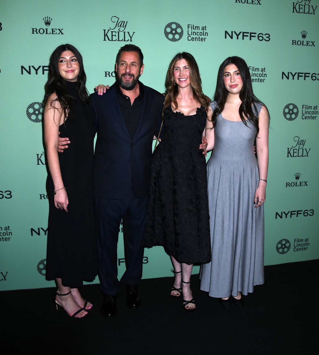 Адам Сэндлер накануне посетил 63-й кинофестиваль в Нью-Йорке. В его рамках состоялась премьера фильма «Джей Келли». 59-летний актер сыграл в картине Рона Сукеника, менеджера актера Джей Келли (Джордж Клуни). На мероприятии Сэндлер появился со своей семьей. Его пришли поддержать жена Джеки Сэндлер и дочери — 19-летняя Сэди и 16-летняя Санни. Они вместе вышли на дорожку к журналистам и фотографам. Актер для премьеры выбрал классический костюм и черную рубашку. Его жена надела черное платье длины миди и босоножки на шпильках. Похожий наряд был и у Санни, а вот Сэди надела серое платье в пол. Дочери Сэндлера пошли по его стопам. Недавно они присоединились в касту фильма «Счастливчик Гилмор 2», в котором также снимается их отец. «Мне не терпится увидеть, что они придумают в ближайшие 10 лет, если они собираются пойти по стопам отца и посвятить себя этому семейному делу. Они все очень талантливы, и наблюдать за их работой — одно удовольствие», — говорил режиссер Кайл Ньюэчек. Напомним, Адам
