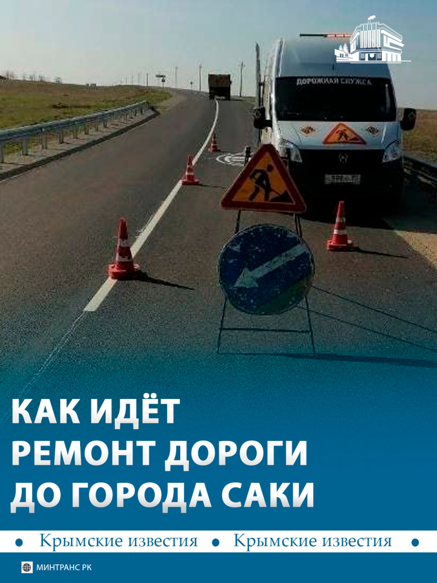 🛠 20 километров дороги ремонтируют в Крыму. Подрядчик работает на участке от посёлка Новосёловское до города Саки.