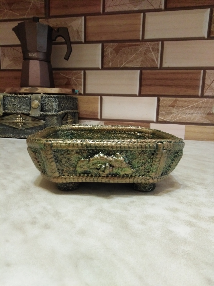 Итак. Новая работа - конфетница "Капельки солнца". Впрочем, она может быть и салфетницей, и небольшим органайзером для мелочей.