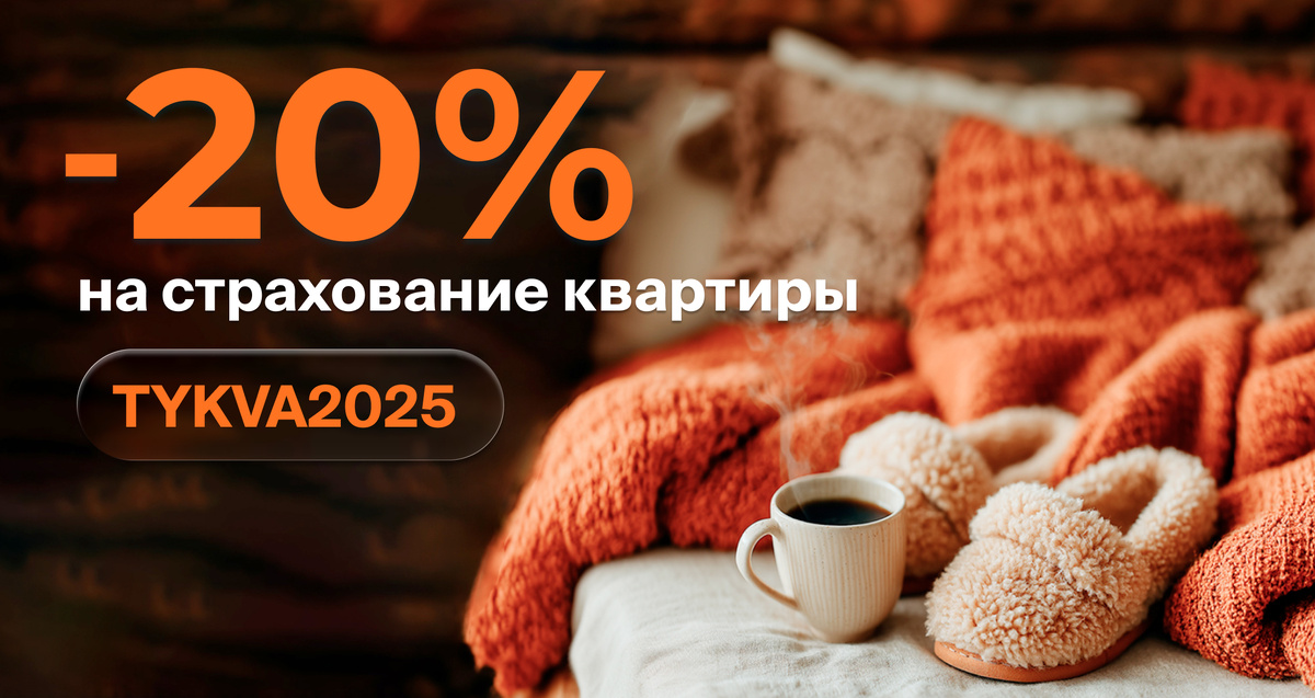 Решили сделать эту осень ярче — дарим скидку 20% на страхование квартиры. Чтобы её получить, оформите полис на нашем сайте с промокодом TYKVA2025 с 3 по 31 октября. Полис покроет расходы на ремонт, если квартира пострадает от пожара, взрыва, затопления, удара молнии, стихийных бедствий, повреждений и противоправных действий третьих лиц.