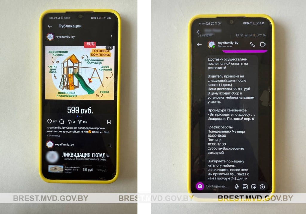 🔴Так, 36-летняя жительница Каменца решила порадовать своего ребенка подарком – детским игровым комплексом. Для поиска товара выбрала наиболее удобный способ – сеть Инстаграм. Просматривая объявления о продаже детских товаров, она нашла то, что искала – комплекс с горкой по приемлемой цене, и связалась с продавцом.