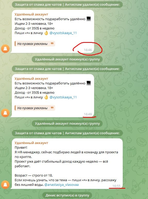 Функция защиты от спама всё ещё критична — мусора реально много (скрин 1 тому подтверждение). Поэтому пока этот бот остаётся в чате. Только не забывайте сразу отписываться от рекламных групп после прохождения капчи. Я к этим группам не имею ни какого отношения и крайне разочарован деградацией бота.