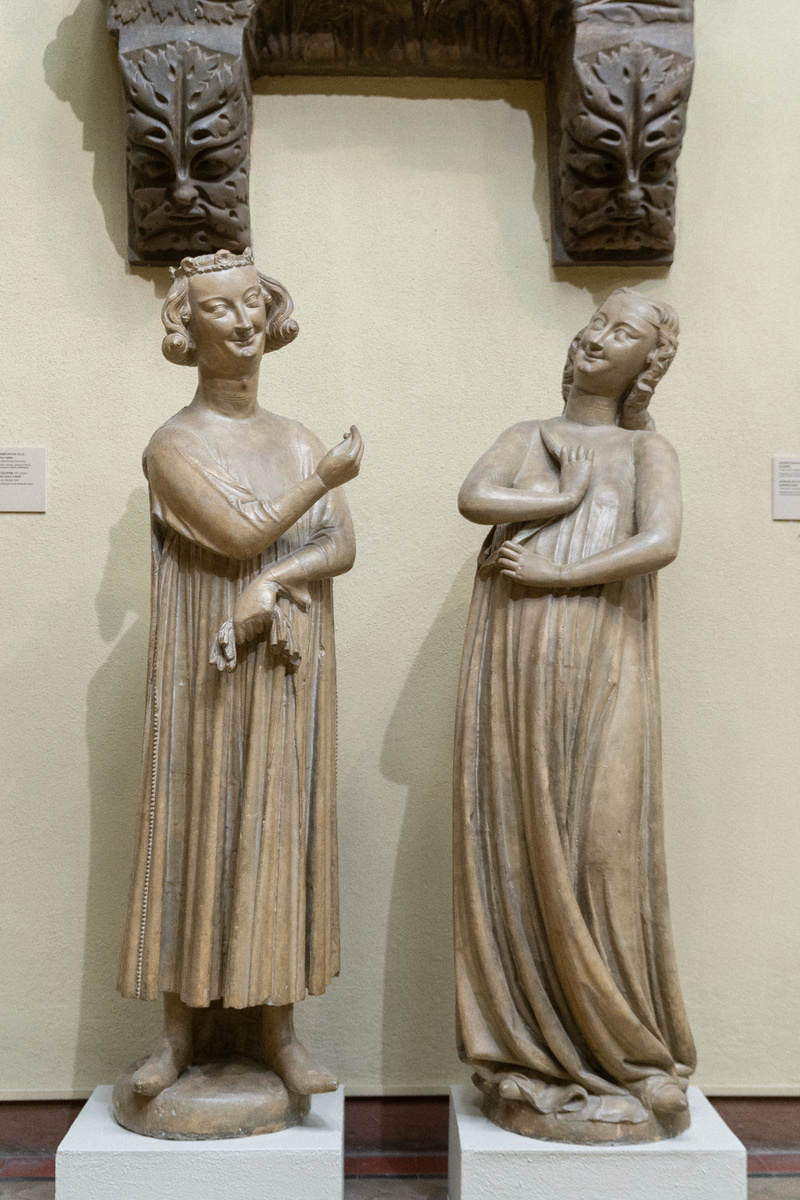 В зале европейского искусства Средних веков в Главном здании музея находится слепок скульптурной группы «Искуситель и дева», который неизменно привлекает внимание посетителей: мужчина и женщина довольно улыбаются друг другу. Сюжет этой скульптурной композиции взят из евангельской притчи о десяти девах (Мф. 25:1-13). Пять из них были неразумными — они не приготовились как следует к встрече жениха, которым оказался Христос. В их светильниках не оказалось масла, чтобы светить на пире, и эти девы не были допущены на праздник. А пять мудрых дев взяли с собой масло для светильников и вошли с женихом на брачный пир. Это метафора Страшного суда. В евангельской притче ничего не сказано про искусителя, но автор скульптурной группы ввел этого персонажа в сюжет своего произведения для бо́льшей назидательности. Фигуры скульптурной группы неизвестного мастера XIII века были расположены на трехметровой высоте — по одну и по другую стороны от стрельчатого окна, находившегося справа от портала. А заказ