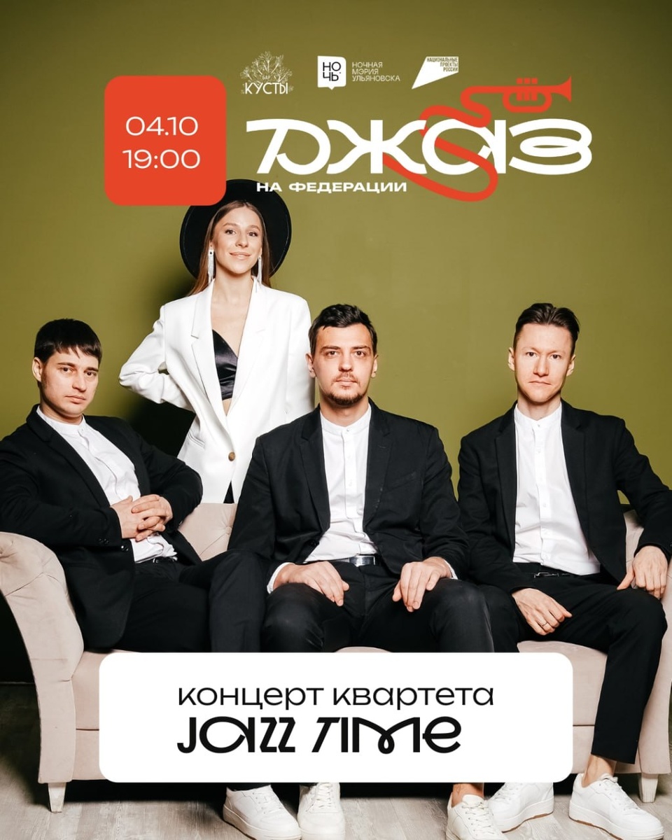 Ночная мэрия Ульяновска организует вечер джаз музыки В баре «Кусты» 4 октября выступит квартет Jazz Time. Музыканты приедут из Самары и будут играть джазовые интерпретации известных рок- и поп-хитов: от Pink Floyd и Deep Purple до Kiss и Red Hot Chili Peppers. Посетителей ждут атмосфера живого концерта, хорошая компания и вкусные напитки. Начало в 19:00 | Вход свободный Подписаться на наши новости