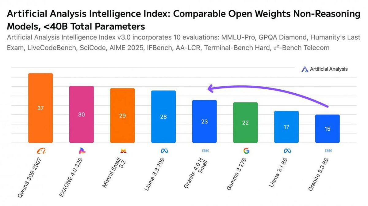 ΠΏΠ°ΡΠ°ΠΌΠ΅ΡΡΠΎΠ²) Π½Π°Π±ΡΠ°Π»Π° 23 Π±Π°Π»Π»Π° - Π²ΡΡΠ΅ Gemma 3 27B (22) ΠΈ ΡΠΎΠ±ΡΡΠ²Π΅Π½Π½ΠΎΠΉ ΠΏΡΠΎΡΠ»ΠΎΠΉ Π²Π΅ΡΡΠΈΠΈ Granite 3.3 8B. ΠΠ°ΠΆΠ΅ Granite 4.0 Micro (3B) ΠΎΠ±ΠΎΠ³Π½Π°Π»Π° Gemma 3 4B. ΠΠΎΠ΄Π΅Π»ΠΈ ΠΎΡΠ»ΠΈΡΠ°ΡΡΡΡ ΡΠΎΠΊΠ΅Π½Π½ΠΎΠΉ ΡΡΡΠ΅ΠΊΡΠΈΠ²Π½ΠΎΡΡΡΡ ΠΈ ΠΏΠΎΠ΄Ρ