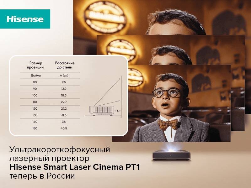 Новый, ультракороткофокусный лазерный проектор 🔥 Он создает яркое, реалистичное изображение размером от 80 до впечатляющих 150 дюймов. Достаточно установить проектор на нужном расстоянии от стены, чтобы получить подходящее по размеру изображение даже в небольшом пространстве. ✨ 110%BT.2020 — сверхширокий цветовой охват; ✨ ΔΕ≈0.9 — чрезвычайно высокая точность цветопередачи; ✨ Разрешение 4K UHD — невероятно четкое изображение; ✨ Яркость 2500 ANSI-люмен — комфортная для восприятия яркость. Компактный корпус, умная система VIDAA U7 и управление голосом делают Smart Laser Cinema PT1 не просто проектором, а центром домашнего развлечения. #hisenserussia #TVhisense @hisense_russia