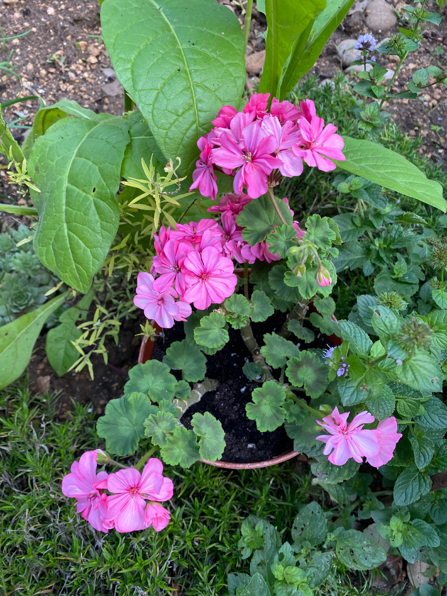 Сегодня можно было порадоваться цветению первой, восстановившейся в горшке от вредительских поползновений, пеларгонии.