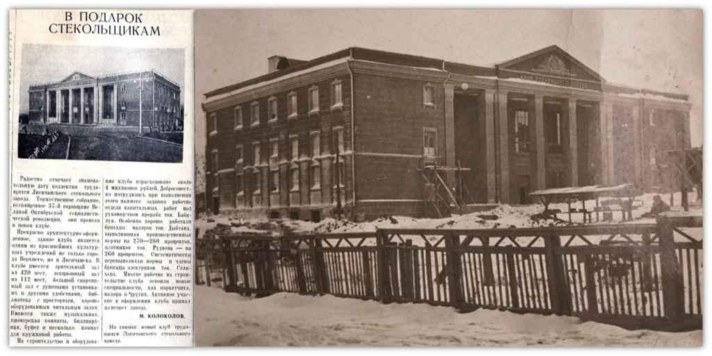 В клубе стеклозавода сразу закипела жизнь. Был открыт читальный зал, творческие кружки. Рядом со зданием разбит парк.