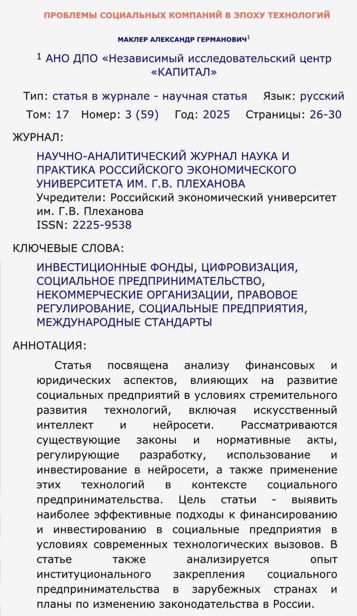 Моя компания продолжает осуществлять стратегические шаги в области научных исследований. Недавно опубликована научная статья, отражающая результаты моего исследования по выявлению перспективных направлений развития бизнеса в будущем. В рамках исследования анализируются инновационные модели предпринимательства и их потенциальное влияние на экономическую эффективность компаний. Результаты исследований представлены в ведущих профильных журналах.