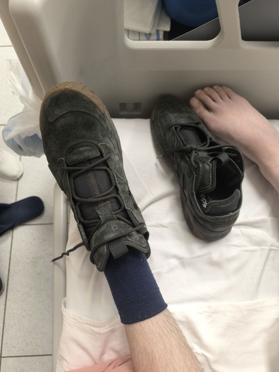 Кроссовки от Волшебницы сегодня отдала Андрюхе. Захожу в палату: у кого 43 размер? -я, у меня.... И действительно подошли. Пусть они помогут ему быстрее встать. Сегодня пока напарница перестилала его постель, он стоял чуть придерживаясь за моё плечо. Так что ноги вполне у него окрепли, нужно лишь чтобы с ним занимались...