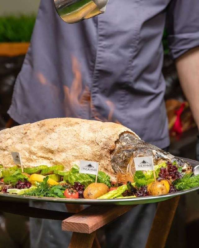 Не только гастрономическое, но и визуальное наслаждение 🤌🏼 Это мы про шоу-подачи от нашего шефа — они станут самой вкусной изюминкой вашего праздника. Одна из любимых — судак, запечённый в соли. Торжественный вынос, эффектное раскалывание хрустящей «брони» прямо у стола 😍 Это очень вкусно! А знаете почему? ➡️ Бережное томление. Соль образует плотный панцирь и превращает запекание в мягкую «баню»: рыба готовится равномерно и остаётся исключительно сочной. Соль не проникает внутрь, лишь деликатно приправляет поверхность — весь акцент на натуральном вкусе судака 🐟✨ 📜 Немного истории. На Руси издавна любили «запечатанные» способы приготовления пищи: рыбу томили в русской печи в ржаном тесте или в глине — ради сочности и чистого вкуса. Солёная корка — родственная по принципу техника, больше известная в Европе, но прекрасно прижилась и у нас. С такой подачей ваш банкет точно запомнится и оставит самые яркие эмоции 🤩 | узнать подробнее |