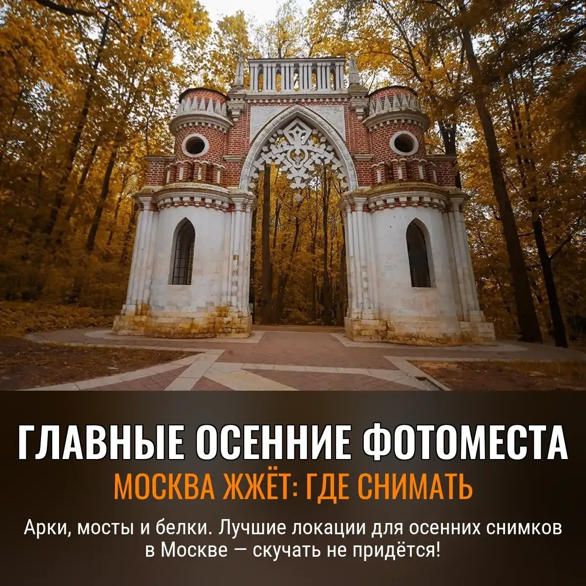 Центровые арки и фонтаны словно молятся попасть в ваши сторис: Сад им. Баумана с аллеей Берсо, "Эрмитаж" с фантанчиком, а на Воробьёвых горах — смотровая площадка и дорожка к Нескучному саду, где вас радушно встречает скульптура «Осень» (на зависть всем листопадным нереалистам). Любовный мост в Лианозово — обязательная точка для тех, кто ещё верит в свадьбу и хочет оставить замок (или хотя бы фоточку для бабушки). Кусково — рай для любителей белок-инфлюенсеров, а парк «Радуга» так ярок, что даже лодки меркнут на фоне листьев.,