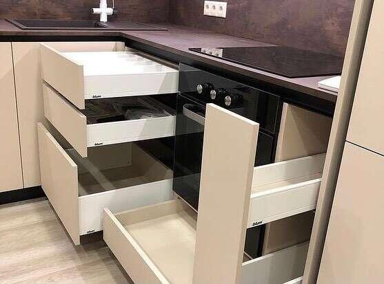 Мы используем фурнитуру Blum — австрийский бренд, который даёт пожизненную гарантию. Да, это на 20–30% дороже дешёвых аналогов. Но поверьте мне, как технологу: я видел, как через год ломаются направляющие из Китая. Ящик начинает цепляться, потом перекашивается, а потом его вообще нельзя открыть.