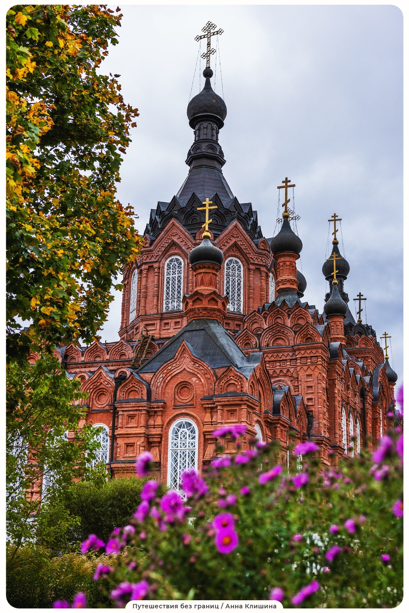 Мимо этого храма невозможно пройти. Ажурная кладка из красного кирпича, чёрные купола, устремлённые ввысь, и другие детали — всё выглядит торжественно и в то же время сказочно. 15 глав собора сияют на солнце, а крыша напоминает шатёр. Каждый элемент здесь продуман, и именно в этом — особая красота Шамордино. Если будете рядом, обязательно загляните: это один из самых выразительных соборов Калужской земли. #ВПуть #духовныетропы
