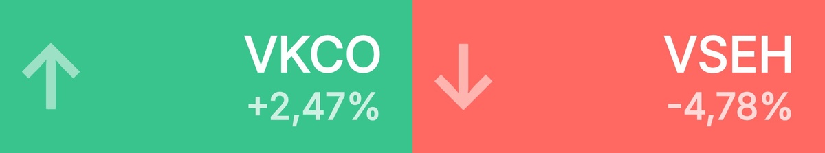 🔺 Топ-10 лидеров роста среди крупнейших акций: VK • 278 ₽ • 2,47% Банк Санкт • 343 ₽ • 1,96% Мечел • 68,18 ₽ • 1,65% Московский • 6,95 ₽ • 1,31% Совкомбанк • 12,50 ₽ • 1,30% Мосэнерго • 2,03 ₽ • 0,77% Северсталь • 929 ₽ • 0,69% Циан • 670 ₽ • 0,45% Русал • 30,42 ₽ • 0,40% Юнипро • 1,41 ₽ • 0,36% 🔻 Топ-10 лидеров падения среди крупнейших акций: ВИ.ру • 62,12 ₽ • -4,78% Сегежа • 1,27 ₽ • -4,74% ФосАгро • 6 626 ₽ • -3,73% Полюс • 2 295 ₽ • -3,11% НоваБев Гр • 378 ₽ • -2,53% М.Видео • 64,30 ₽ • -2,50% Татнефть п • 565 ₽ • -2,28% МТС Банк • 1 194 ₽ • -2,17% Группа ЛСР • 715 ₽ • -2,14% Лента • 1 831 ₽ • -1,98%