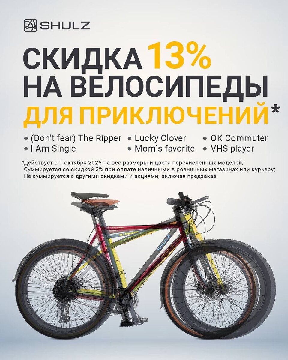 С 1 октября мы запускаем акцию: 13% скидки на шесть моделей adventure-байков SHULZ. Активный сезон подходит к концу, но приключения только начинаются! В акции участвуют: