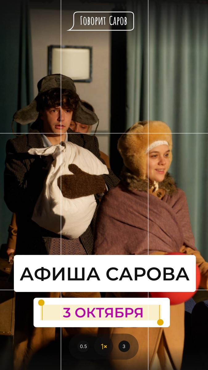 ↗ ЧТО И ГДЕ ПРОИСХОДИТ В САРОВЕ 3 ОКТЯБРЯ 🎭Саровский драматический театр (пр.Музрукова, 26, тел.9-83-83) 18:00 П Р Е М Ь Е Р А! «Новоселье в старом доме», 16+ Человеческая история А. Кравцов 🏛Городской музей (пр. Мира, 48, тел. 3-42-56) Декада пожилых людей (по предварительной записи): 11:00 Лекция «Ученый и отец» о В.А. Александровиче 11:00 Познавательное занятие «Титаны науки» (Пушкинская карта) Выставка «Щит отечества», посвященная 80-летию атомной отрасли «Не повторяется такое никогда» выставка фотографий из фондов Городского музея к началу нового учебного года Курс познавательных занятий по предварительной записи (6+): «Лес полон сказок и чудес», «Пернатые соседи», «Жужжащие истории», «Красивые и редкие», «История рядом» 🖌Художественная галерея (пр. Мира, 1, тел. 7-02-87) 15:00 Творческая мастерская «Кладезь знаний» (Пушкинская карта, 8-11 классы) Создаем блокнот в технике «киригами» Персональная выставка Натальи Бритовой «Цвет и свет»…