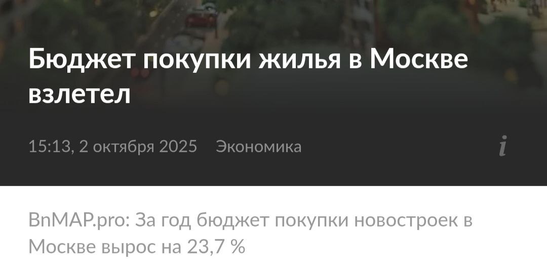 🔶 По данным bnMAP.pro на сентябрь, средняя стоимость квартир в новостройках Старой Москвы достигла 33,1 млн рублей, показав годовой рост на 23,7%. Не то, чтоб сильно подорожало прям всё: дешёвое жилье уже раскупили, доля комфорт-класса упала, а дорогое жилье стало дороже, все это и дало прирост в среднем «по палате». 💎 Это хорошо демонстрирует динамика цен, которая сильно различалась по сегментам: в премиум-классе бюджет взлетел на 43,4% (до 131,1 млн рублей), тогда как в массовом и бизнес-сегментах рост был значительно скромнее — на 8,6% и 6,7% соответственно. 🧊 Монолит