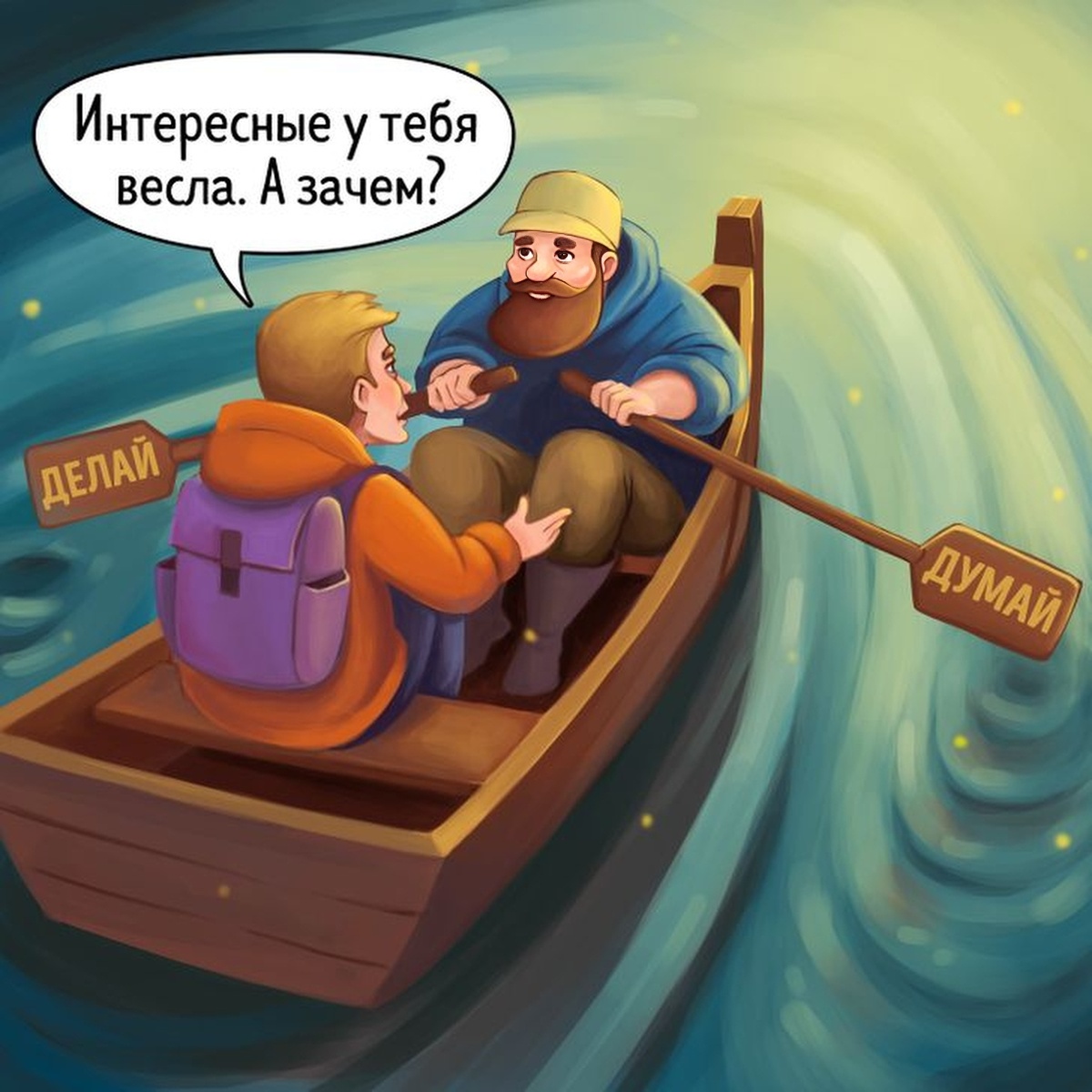 P.S. Желаю всем нам мудрости лодочника и отваги путешественника! И, конечно, крепких весел в виде «Думай» и «Делай»!