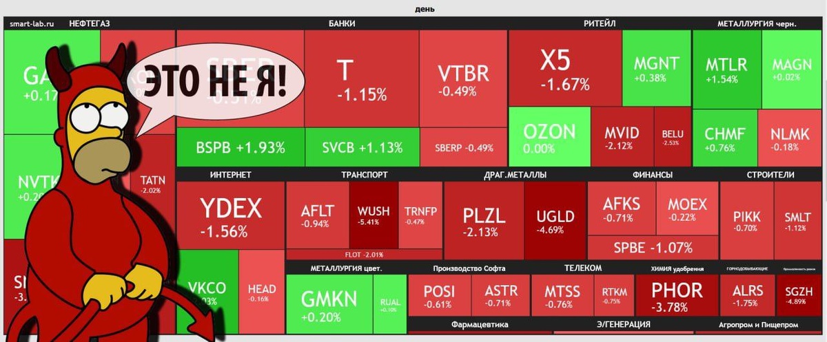 Более половины бумаг сегодня в красной зоне, наиболее печально себя чувствуют: финансовый сектор, сектор драг. металлов, строители, софт и транспорт.