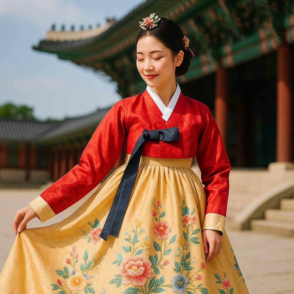 История ханбока насчитывает более двух тысяч лет. Его прообраз появился ещё в эпоху трёх корейских государств (I в. до н.э. – VII в. н.э.). Уже тогда форма костюма отражала не просто моду, а целый мир философских представлений. В мягких линиях и плавных силуэтах закодирована идея баланса между небесным и земным, телом и душой. Женский ханбок состоял из короткой куртки чогори и широкой юбки чима, которая дарила силуэту текучесть и утончённость. Мужской вариант включал длинную рубаху и свободные штаны паджи, дополненные жилетом или курткой. В этом простом на первый взгляд крое заключена целая система символов: горизонтальные линии олицетворяли землю, а вертикальные — небо, объединяя человека с космосом. Ханбок — это всегда язык символов. В прошлом цвет костюма строго соответствовал возрасту, положению в обществе и даже конкретному событию. Не менее важными были узоры. Журавль символизировал долголетие, бабочка — любовь и счастье, облака — духовную высоту и удачу. Даже декоративные узлы н