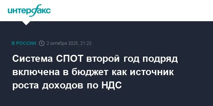 СПОТ поможет увеличить НДС, обеспечив в бюджет 300 миллиардов рублей Эй, народ! У нас тут новая фишка – СПОТ, которая поможет бюджету собрать аж 300 миллиардов за три года, благодаря НДС с импорта из ЕАЭС. Это типа предоплата налога, чтобы никто не хитрил. Система в разработке, а доходы планируют растить как грибы после дождя! 🗞 Читайте подробнее: urbandigest.ru 🖼 Изображение от: www.interfax.ru 📣 Будьте с нами: urban_digest