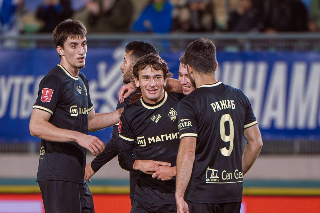 Махачкалинское "Динамо" одержало победу над "Ростовом" в серии пенальти в матче пятого тура "пути Российской премьер-лиги (РПЛ)" Кубка России по футболу. Матч прошел на "Анжи-Арене". Основное время завершилось со счетом 1:1, в составе "Динамо" отличился Темирхан Сундуков (64-я минута), у "Ростова" гол забил Даниил Шанталий (33). В серии пенальти точнее были махачкалинцы — 4:2. После пяти туров "Динамо" набрало 13 очков. Ранее команда гарантировала себе участие в плей-офф "пути РПЛ". У "Ростова" после пяти матчей 4 очка, команда занимает третье место. Вместе с "Динамо" и "Ростовом" в группе C участвуют московский "Спартак" и "Пари Нижний Новгород". "Спартак" идет на втором месте с 10 очками, у идущего на последнем, четвертом месте "Пари НН" 3 очка. В заключительном туре "Динамо" примет "Спартак" 21 октября, "Ростов" на следующий день дома сыграет с "Пари НН". Кубок России разделен на "путь РПЛ" и "путь регионов". На групповом этапе "пути РПЛ" команды сыграют по шесть матчей, две лучшие