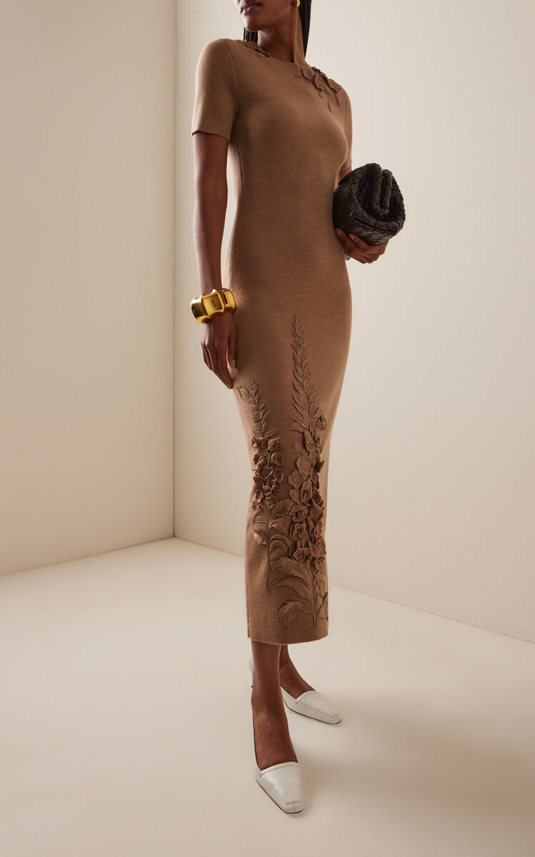 Да, да, сегодня в разборе будет платье. Именно платья тоже хотели увидеть в разборе. Тем более в последнеее время пальто и блуз было больше всего на моём канале, а вот платья пропали) Надо исправлять эту ситуацию и начнём с вот такого красивого платья: Это очередной шедевр из новой коллекции Oscar de la Renta. Ну не виновата я, что изделия этого бренда чаще всего меня очаровывают. Но ведь красиво же!? И я не смогла пройти мимо такой красоты и решила поделиться с вами. Стоимость , как всегда стремится ввысь: Но зная цены на другие платья этого бренда, а они доходят до €15000, это ещё недорого. Что такого уникального в этом платье? Конечно, вышивка! Именно она является главным героем, украшением, изюминкой этого платья: Большинство элементов сделаны из основного трикотажа. Но там ещё встречается то ли шифон, то ли органза, которая идеально подобрана по цвету. В итоге смотрится всё единым целым , в одном цвете. Лишний раз порадуюсь за тех, кто умеет хоршо вышивать и знает ра