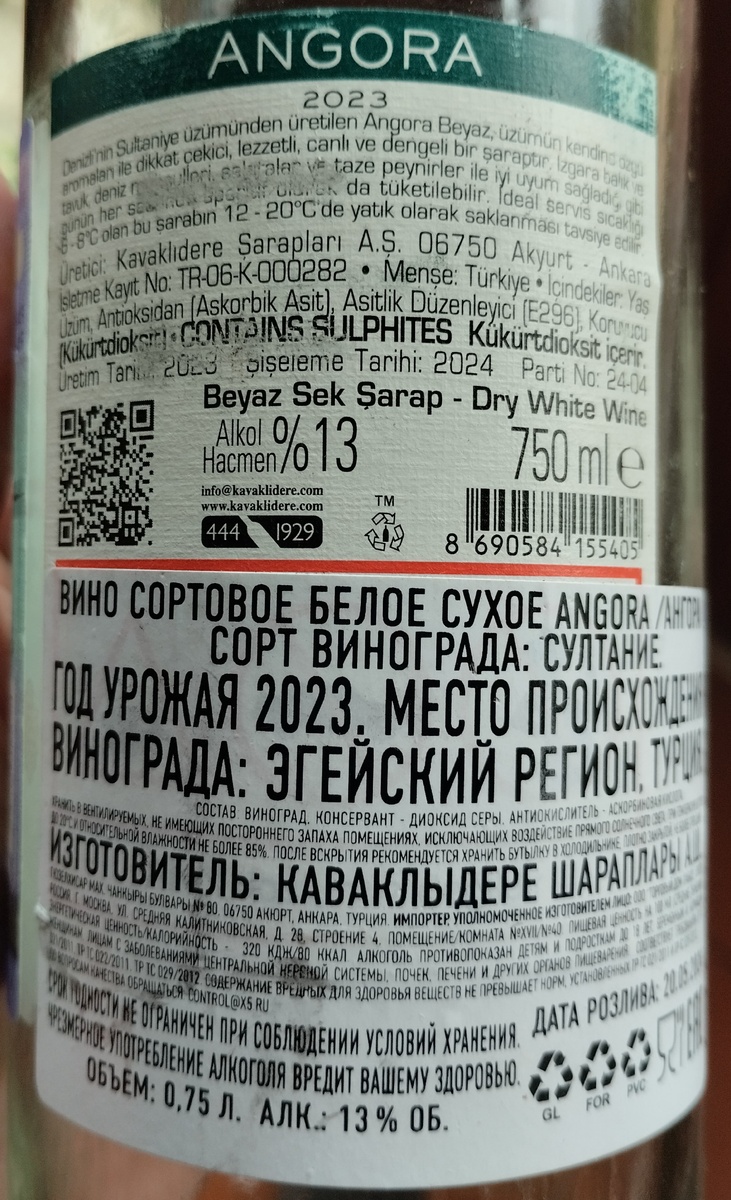 В придворном Перекрестке завезли вина из дружественных стран. Одно из них турецкое, причем уже домва выяснилось, что оно от той же винодельни, которую я уже пробовал еще в данной средиземноморской стране. Но мы люди не гордые, ведь на даче надо же что-то пробовать. Так что, - погнали. Стоит на полке за 700 с небольшим рублей. Не стрем, но норм. Сорт винограда Sultana. Место произрастания Эгейский регион. Цвет светло-желтый. В аромате лимон, зеленое яблоко, крыжовник, апельсин, помело, дыня, груша. Попсово, но приятно, свежо. Во вкусе выше среднего кислотность, среднее тело, средняя длина цитрусового послевкусия, которое уходит в цедру лимона. Во вкусе груша и зеленое яблоко. Балла 84. На даче, осенью при температуре 20 по Цельсию, самое вкусное вино, чтобы запить сосиски из индейки с зеленым салатом.