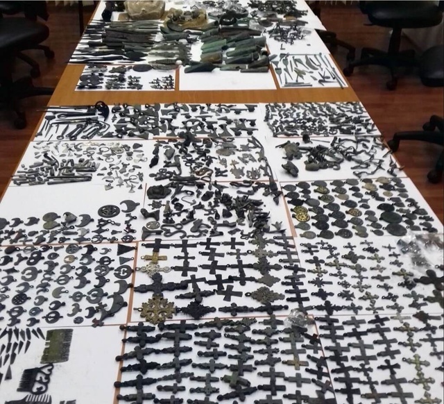 Почему за последние пятнадцать лет цены на копаные предметы старины упали в десятки раз. В качестве иллюстрации к заметке фотография сербских таможенников, конфисковавших партию археологических предметов в фуре из Украины. 2021 год. Само фото можно разбирать часами. Тут вам и редкие энколпионы 14-16 веков, и простые нательные кресты того же периода. В центре фото мы можем увидеть целую группу топоров Одина, амулеты воинов 10-12 веков, а в самом дальнем крае фото там вообще комплекты нескольких захоронений по бронзовому веку. И это всего лишь одна случайно задержанная партия, что ввозили в Европу из Украины. Итак, почему же цены на разного рода копаные предметы старины упали в десятки раз за последние 15 лет? Для понимания падения цен приведу пример. Пятнадцать, двадцать лет назад обычный сейчас крестик-корсунчик 12-го века на аукционах уходил влёт за 40–60 тысяч рублей. Сейчас подобный крест удастся продать коллекционерам максимум за 1,5–2 тысячи рублей. Почему оно так? Ну посмотрите н