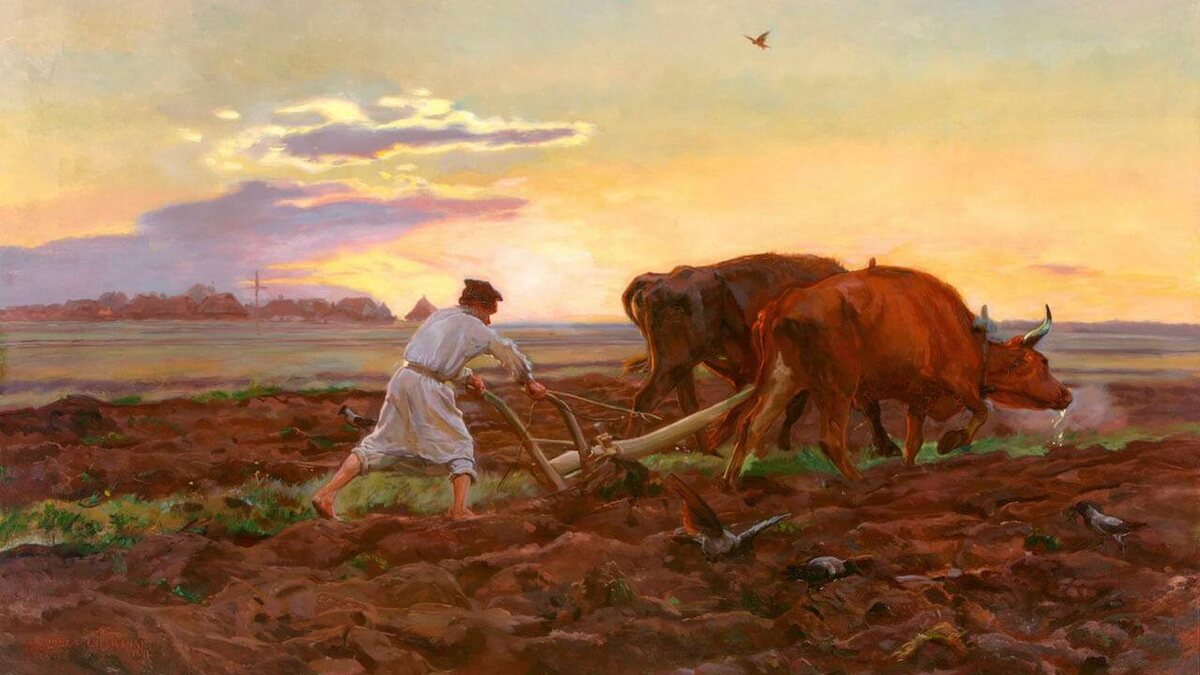 Один великан жил в своем замке в любви и изобилии. Никто на свете не мог потягаться с ним ни в здоровье, ни в силе, ни в богатстве. Однако, пресытившись всем на свете, великан почувствовал пустоту в сердце, понял бессмысленность своей жизни, и обуяла его тяжкая хандра. И вот однажды утром решил он отправиться в далекий путь, чтобы найти какую-нибудь радость и утешение. Оседлал он коня и в сопровождении слуг тронулся в путь. Странствовал долго, но не нашел ничего, что бы развеселило и осветило его душу. И всадники, и лошади очень устали, когда приблизились к одному полю, где трудился пахарь. На обочине возвышались огромные дубы с густыми кронами. Сошел великан в тень, чтобы отдохнуть. Пока слуги суетились около усталых коней, он ненароком бросил взгляд на ниву и заметил необычную картину: один вол лежит на земле, другой стоит в ярме, а пахарь — на коленях, с воздетыми руками — непрестанно восклицает: «Благодарю Тебя, благодарю Тебя, хвала Тебе, Боже!» Не уразумев ничего из того, что бы