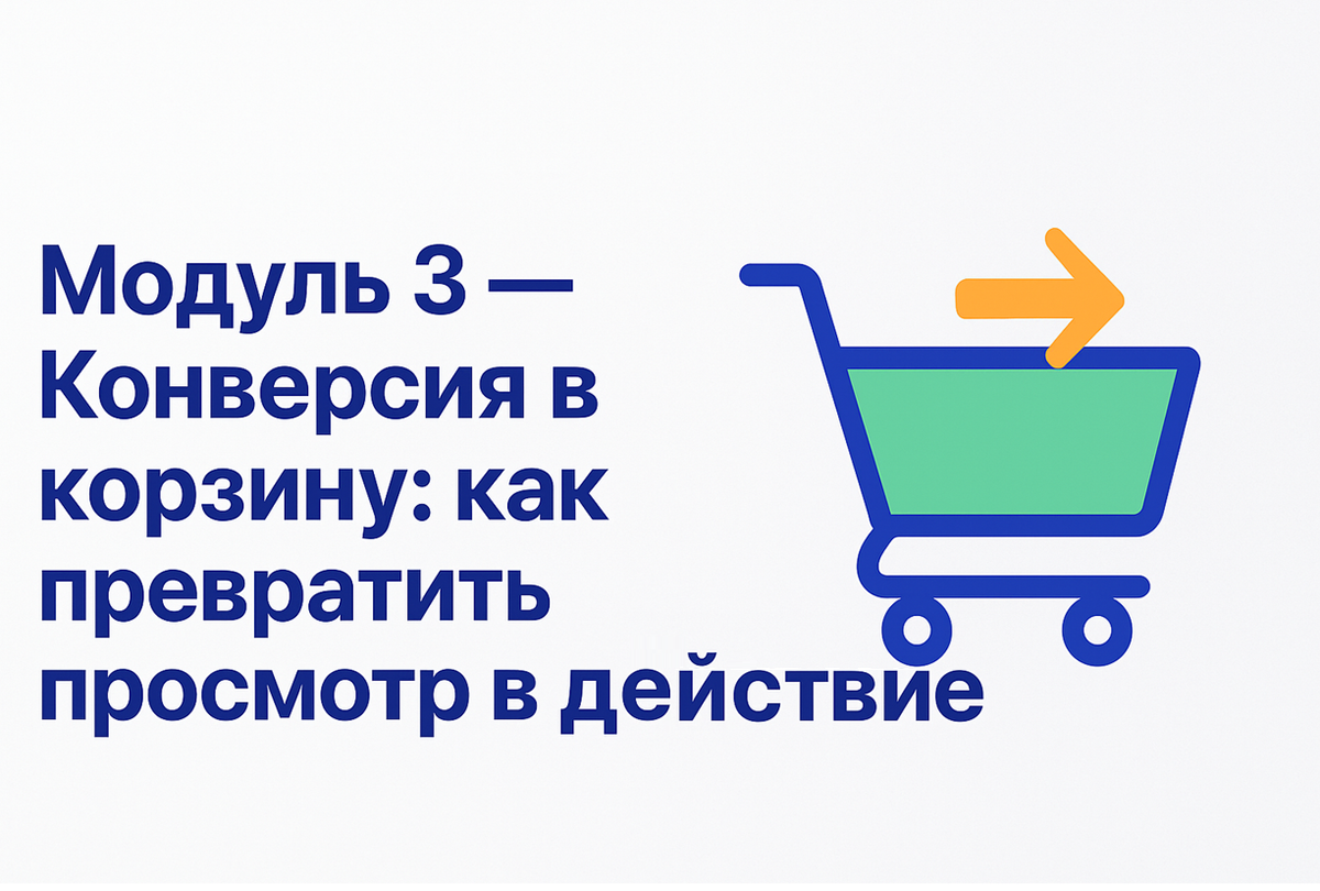 Цель модуля. Научиться системно повышать CR (conversion rate) из просмотра карточки в корзину. Это ключевой показатель, который определяет эффективность любого привлечённого трафика: если CTR отвечает за клики, то именно CR в корзину делает рекламу прибыльной или убыточной.