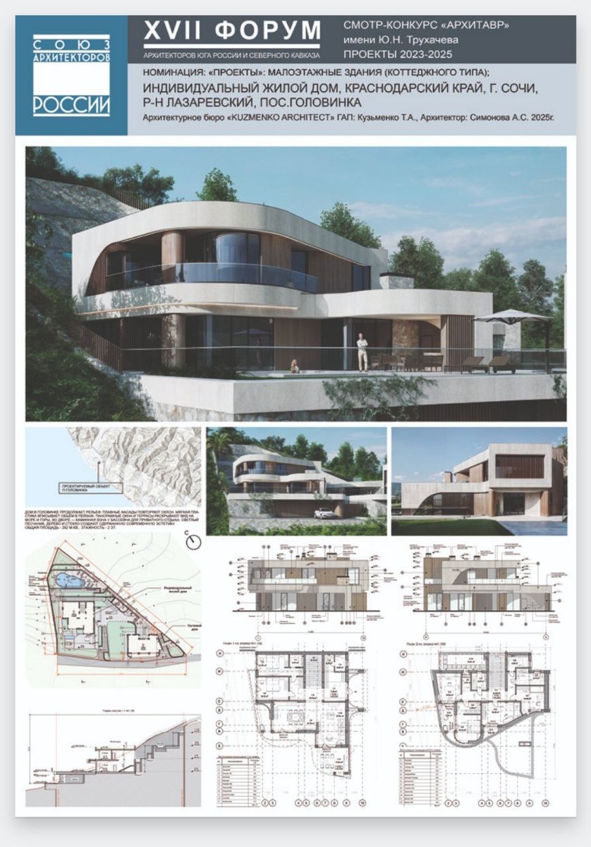 🏆🏆🏆Наше бюро KA стали призëрами смотр-конкурса «АРХИТАВР» им. Трухачева Ю.Н. в Ростове. На конкурс были представлены конкурсные работы, выполненные в период с 2023 по 2025 гг. Бронзовый диплом присужден за индивидуальный жилой дом, Краснодарский край, г. Сочи, Головинка. Архитектурное бюро «KUZMENKO ARCHITECT» Главный архитектор проекта Кузьменко Тимофей, архитектор Симонова Александра #достижения #IP_Gol_300 https://rostarch.ru/news/itogi-archtrav-2025/