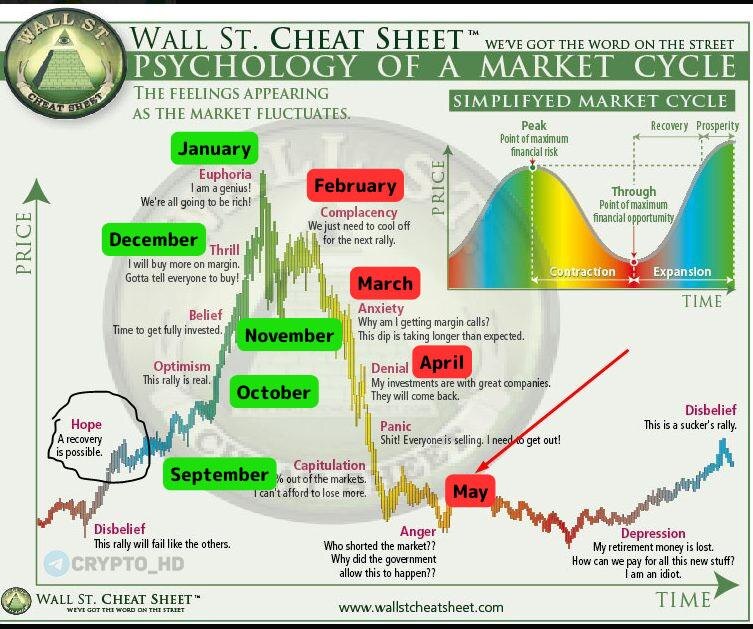 #ВлажныеМечты #Альткоины 🦋 Альтсезон начнется в декабре? По версии оптимистов из Twitter и схеме «психологии рыночного цикла», именно в декабре рынок войдет в фазу азарта (Thrill), а в январе наступит эйфория – пик альтсезона и бесконечные иксы. Схема «психологии рыночного цикла» (Wall St. Cheat Sheet) – модель, показывающая, как массовые эмоции инвесторов сменяют друг друга на бычьем и медвежьем рынках: от недоверия и надежды через оптимизм, веру и эйфорию до паники, капитуляции и депрессии, после чего цикл повторяется. Crypto Headlines
