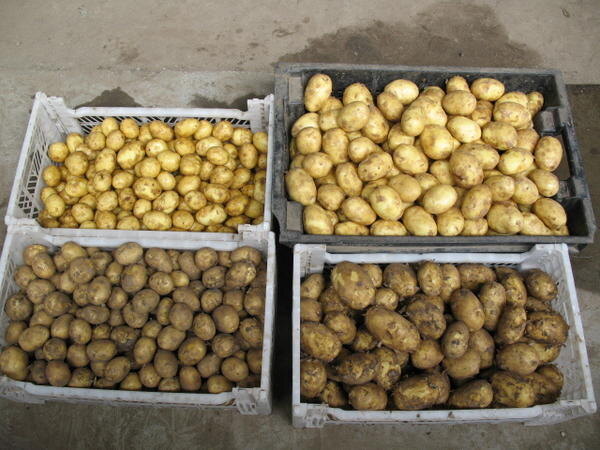 Клубни отбираем с наиболее урожайных кустов, весом 90-100 грамм (после просушки их вес уменьшится). Если в гнезде большая часть мелких клубней, то такой куст лучше пустить в переработку. Если в гнезде есть хоть один загнивающий клубень, то с этого гнезда лучше не оставлять клубни, т.к. есть возможность инфицирования остальных. Отобранные клубни просушиваем на солнце со всех сторон пару часов, затем убираем под навес на 4-5 часов до полного просушивания.