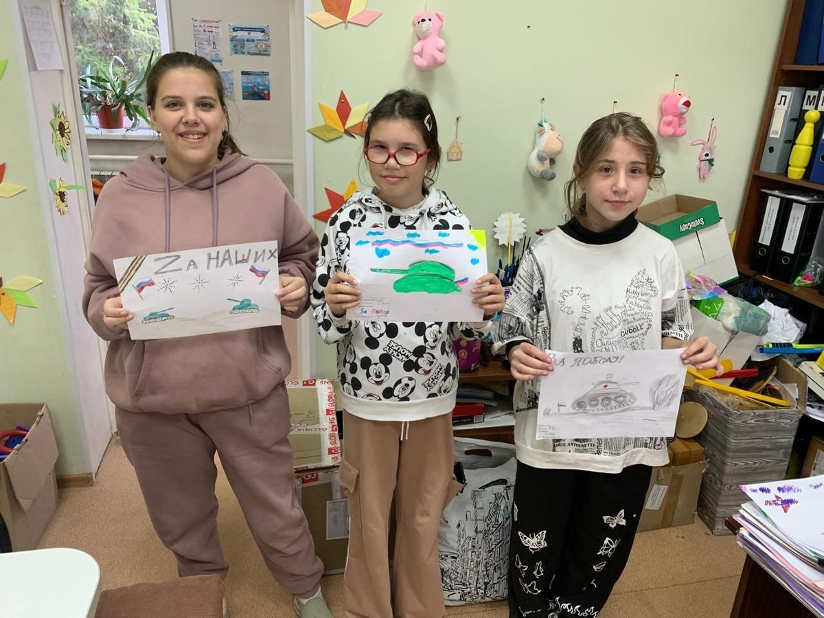 Вместе с педагогом они нарисовали рисунки в поддержку военнослужащих.