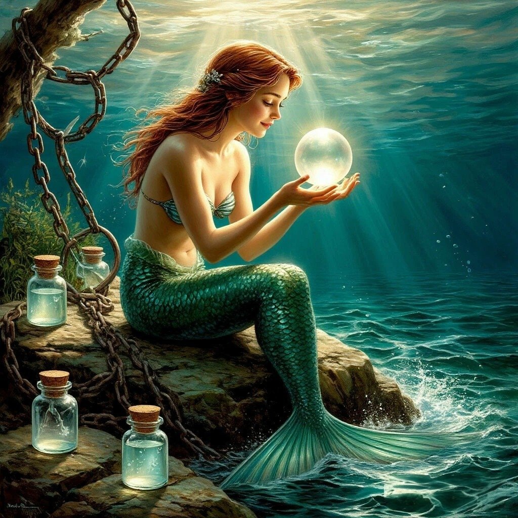 Но Русалка не знала своей силы. Она смотрела на мир над водой — на людей, что смеялись, любили и плакали, — и ей казалось, что её подводная жизнь неполноценна. «Вот бы стать одной из них, — думала она, — тогда я буду по-настоящему счастлива».