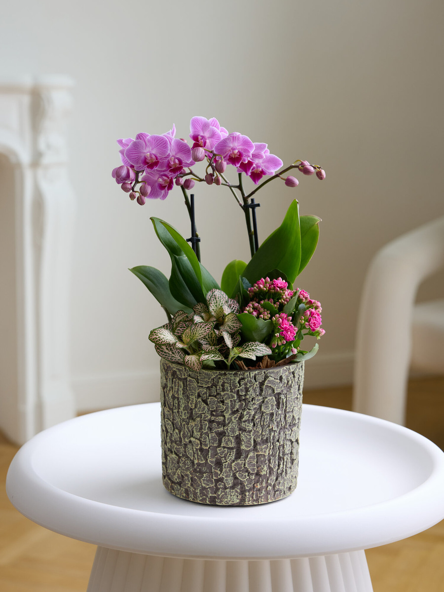 Композиция «Цветочная Гармония» с живыми орхидеями в кашпо на ножках Margo plants