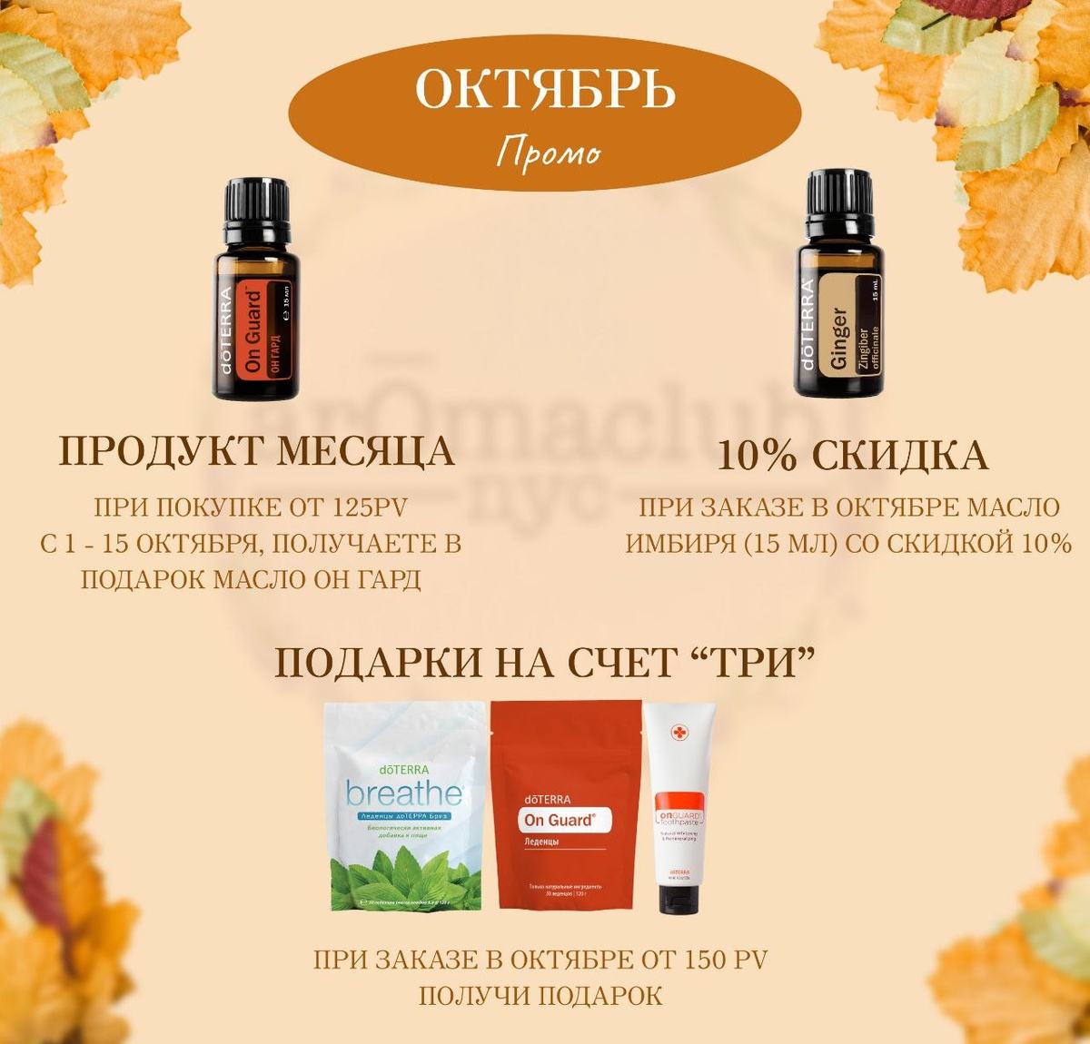 продукта с натуральными эфирными маслами, сделав в октябре заказ от 150 PV
