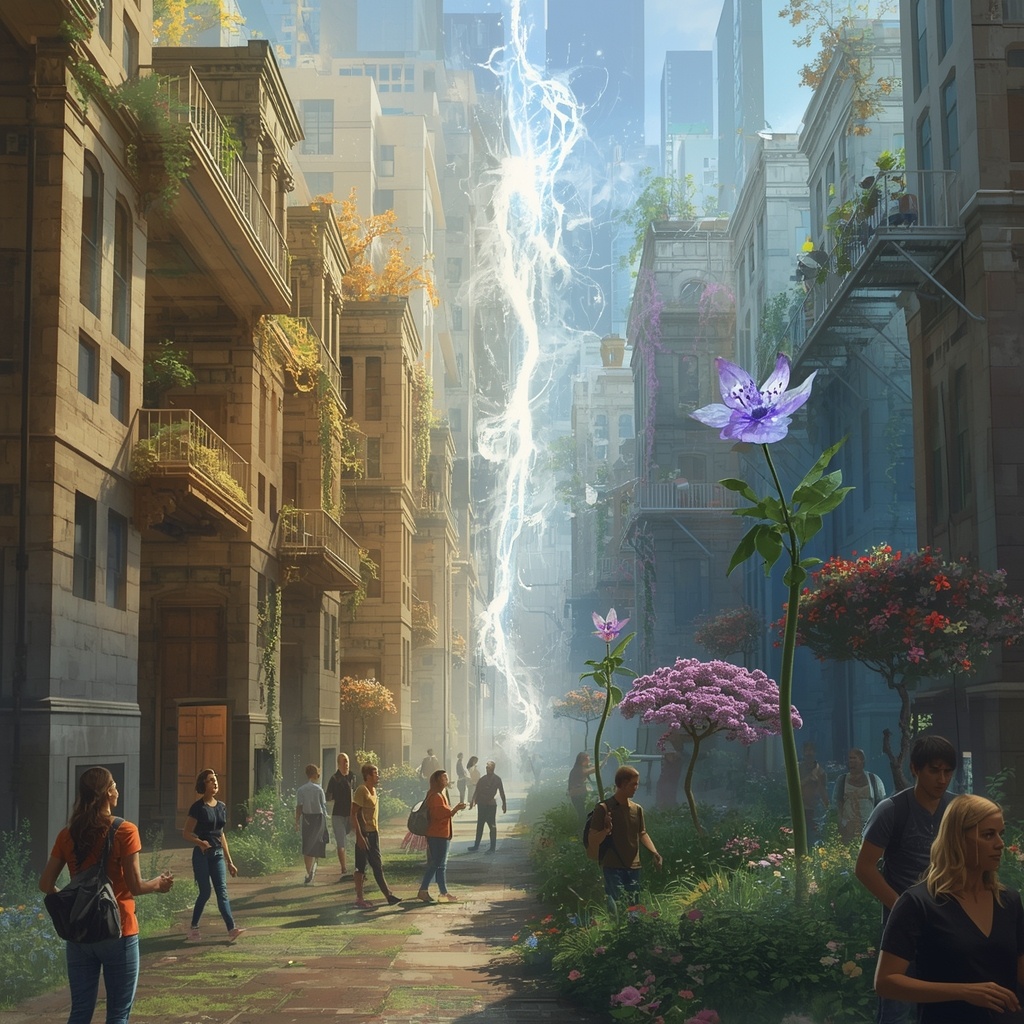 Крылатый мужчина закрыл глаза и протянул руку. Из воздуха материализовался небольшой цветок — не слишком яркий, не слишком нереальный, но определённо прекрасный.