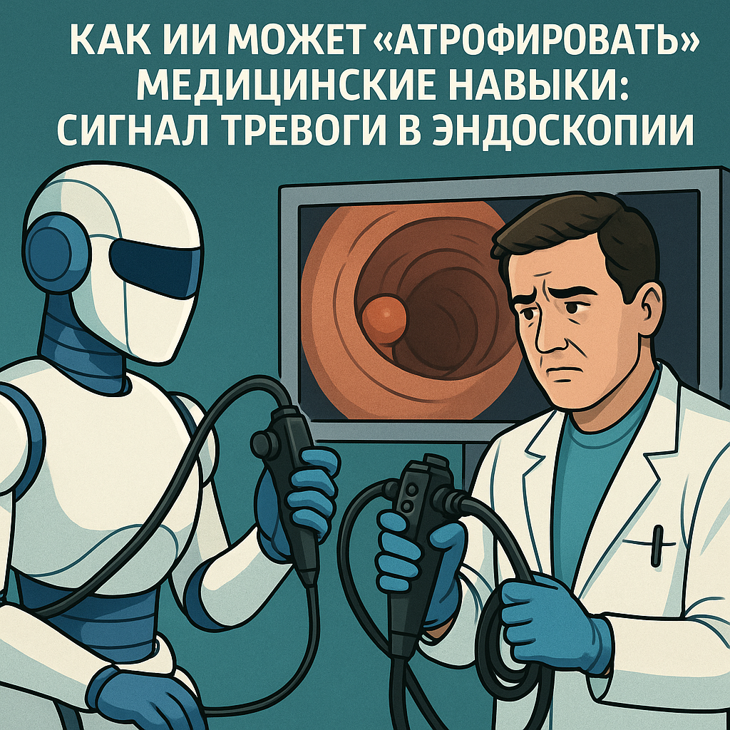Как ИИ может «атрофировать» медицинские навыки: сигнал тревоги в эндоскопии Медицинские технологии стремительно меняют нашу реальность, и искусственный интеллект (ИИ) — не исключение. На первый взгляд, усиление диагностики и поддержка врачей звучат как неоспоримый прогресс. Но что, если рост зависимости от ИИ приведёт к нежелательным побочным эффектам — к ослаблению собственных профессиональных навыков у специалистов? Новое исследование в области эндоскопии ставит именно такую гипотезу — и результаты заставляют призадуматься. Колоноскопия — это процедура, в ходе которой врач исследует внутреннюю поверхность кишечника с помощью эндоскопа. Важная задача — обнаружение и удаление аденоматозных полипов (аденом), поскольку они могут трансформироваться в рак.