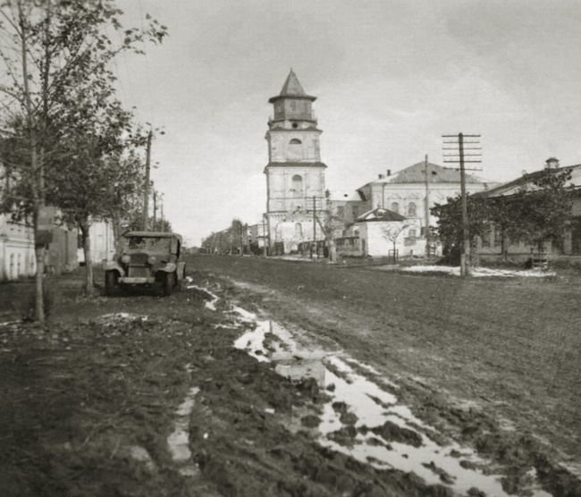 Фотография примерно февраля 1942 года, город Севск, Успенский Собор и его колокольня, во время фашистской оккупации. Первое упоминание о соборной церкви в Севске встречается в переписной книге 1646 г. Фото 6