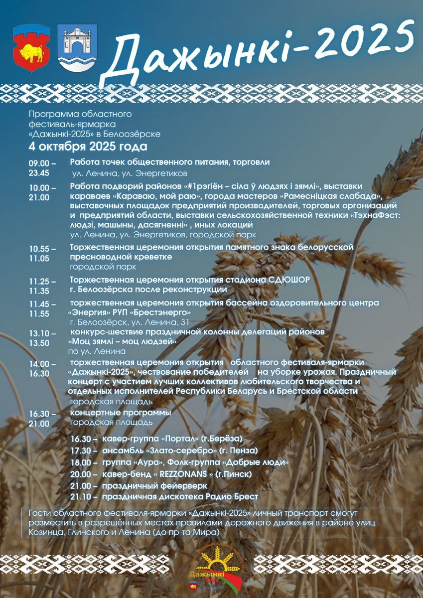Программа областного фестиваля-ярмарки «Дажынкі», который пройдет в Белоозерске 4 октября.