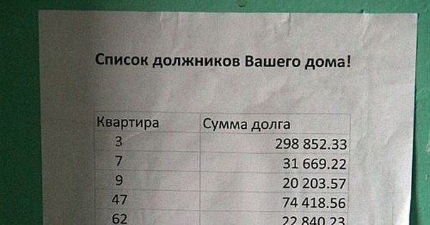 Вывешивание в подъезде списков должников за неоплату услуг ЖКХ с персональными данными является противозаконным.