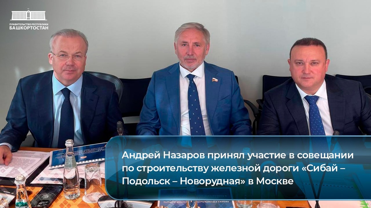 Андрей Назаров принял участие в совещании по строительству железной дороги «Сибай – Подольск – Новорудная» ➡️ Премьер-министр Республики Башкортостан Андрей Назаров в ходе рабочей поездки в Москву встретился с первым заместителем министра экономического развития России Максимом Колесниковым. Темой совещания стало строительство железной дороги «Сибай – Подольск – Новорудная». — Новая магистраль важна для развития республики и соседних регионов, она упростит и ускорит вовлечение в экономической оборот уникальных месторождений цветных металлов Башкирского Зауралья. Мы подсчитали, что в результате прирост валовой добавленной стоимости составит более 766 млрд рублей, а налоговые платежи превысят 200 млрд рублей. В 2022 году проект получил одобрение заместителя Председателя Правительства Российской Федерации Дмитрия Чернышенко. Ему присвоен статус прорывного, — отметил Премьер-министр. ℹ️ Планируемая железнодорожная линия напрямую свяжет восточные районы Среднего и Северного Урала с Каза