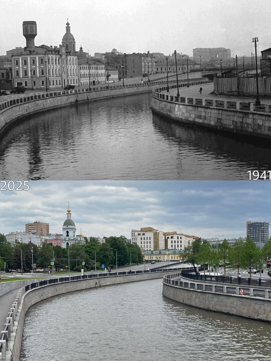 Всем доброго времени суток! Сегодня мы посмотрим в формате было/стало, как изменялась наша Москва на протяжении эпох. Давно не делал таких подборок здесь. Надеюсь на вашу поддержку! 1) Кошельная слобода Напротив высотки на Котельнической набережной есть сквер, который посвящен пограничникам. На месте этого сквера до середины прошлого века находился целый район Москвы. Назывался он так: Кошельная слобода. Есть много версий относительно происхождения этого названия. По одной, шуточной, тут жили богатые люди, у которых в кошельках было много денег. По другим, тут делали или муку крупного "кошельного" помола, или делали корзинки "кош", или с помощью "кошели" ловили раков. Сейчас от слободы ничего не осталось. 2) Строительство гостиницы "Россия" и храм зачатия святой Анны Как сильно тут все изменилось за сто лет. Сначала исчез старый район города, потом исчезла гостиница "Россия" и появился парк Зарядье. Только древний храм стоит нетронутым посреди этих перемен. Хорошо, что что-то вечно.