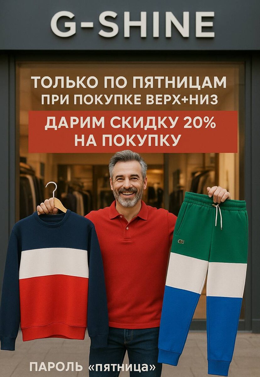 ВЕСЬ МЕСЯЦ ПО ПЯТНИЦАМ МЫ ТЕПЕРЬ ДАРИМ САИДКУ 20% на покупку ВЕРХ+НИЗ КУРТКА + ДЖИНСЫ ТОЛСТОВКА + ШТАНЫ ВЫБОР ЩА ВАМИ! 📲 +79522425511 ✉️ Есть вопрос? Напиши👈 ✅ Работаем с 11 до 21 каждый день. Сайт g-shine.ru Группа вк G-shine